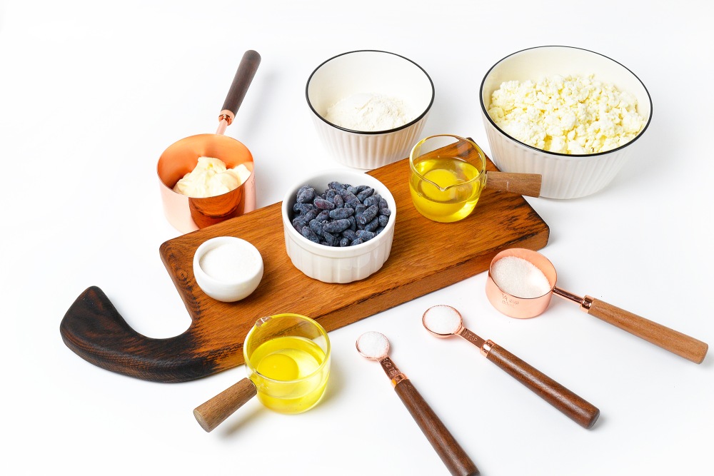 Подготовить ингредиенты для приготовления ватрушек из творога для заморозки. Творог следует брать жирностью 5% или 9%. Желательно, чтобы он был не слишком влажный.