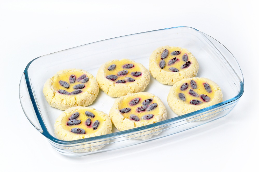 - Не кладите ягоды так, чтобы они сильно выпирали из жидкой начинки – подгорят при запекании.