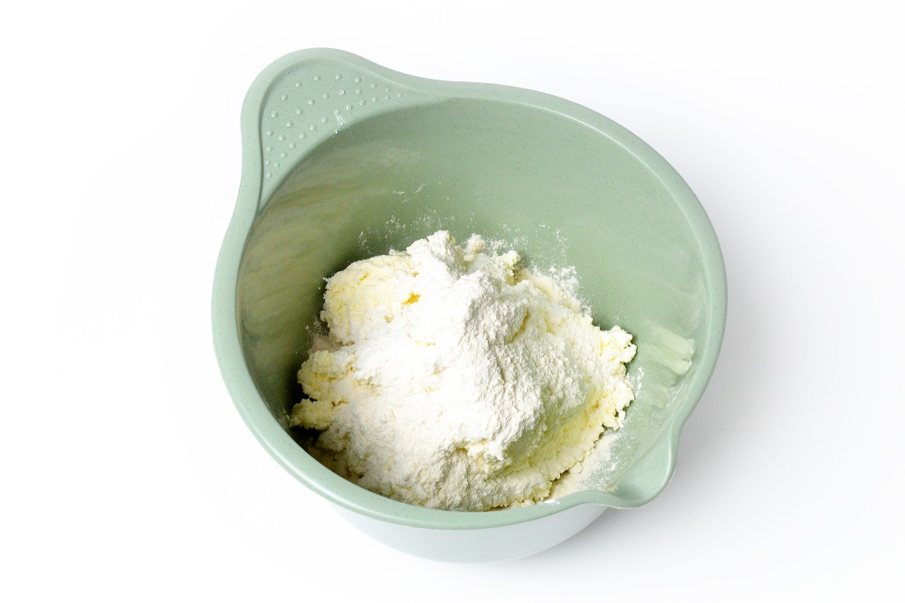 Смешать творожную массу с мукой, добавляя ее в 2-3 захода.