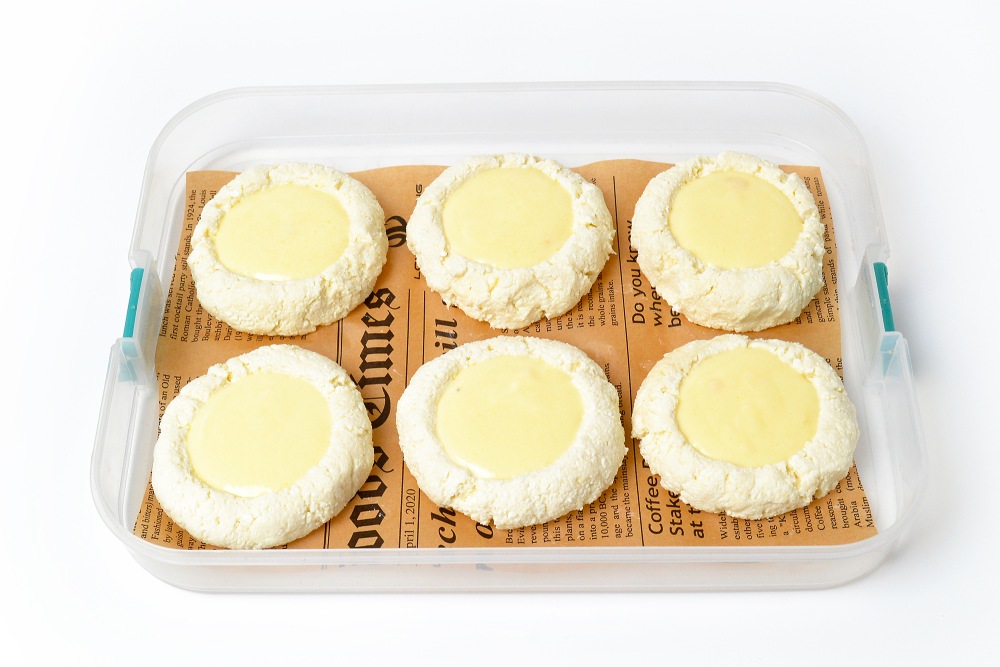 Перед приготовлением, не размораживая, положить ватрушки в форму или на противень, застеленный пергаментом.