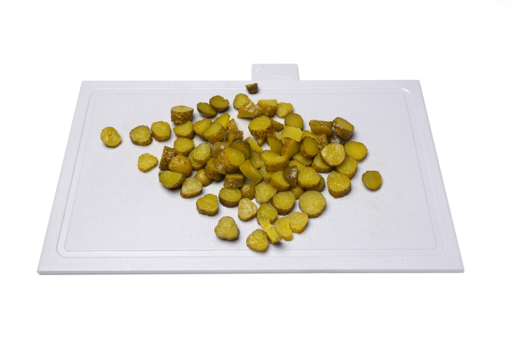 Огурцы нарезать не крупно. У меня маленькие корнишоны, поэтому я нарезала их кольцами, этого достаточно.