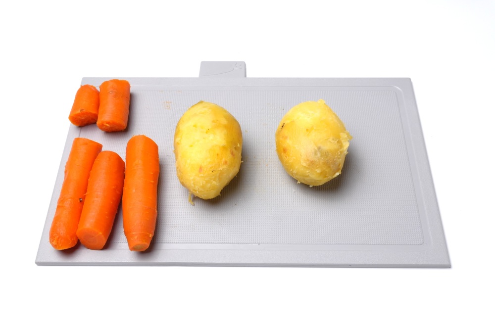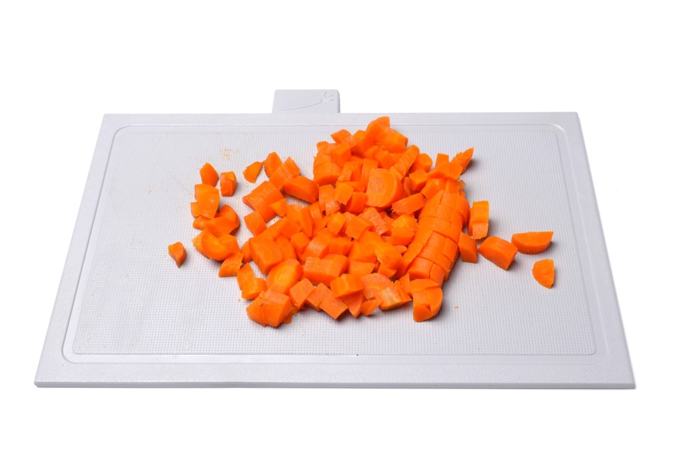 Морковь и картофель нарезать на небольшие кубики, размером с горошек.