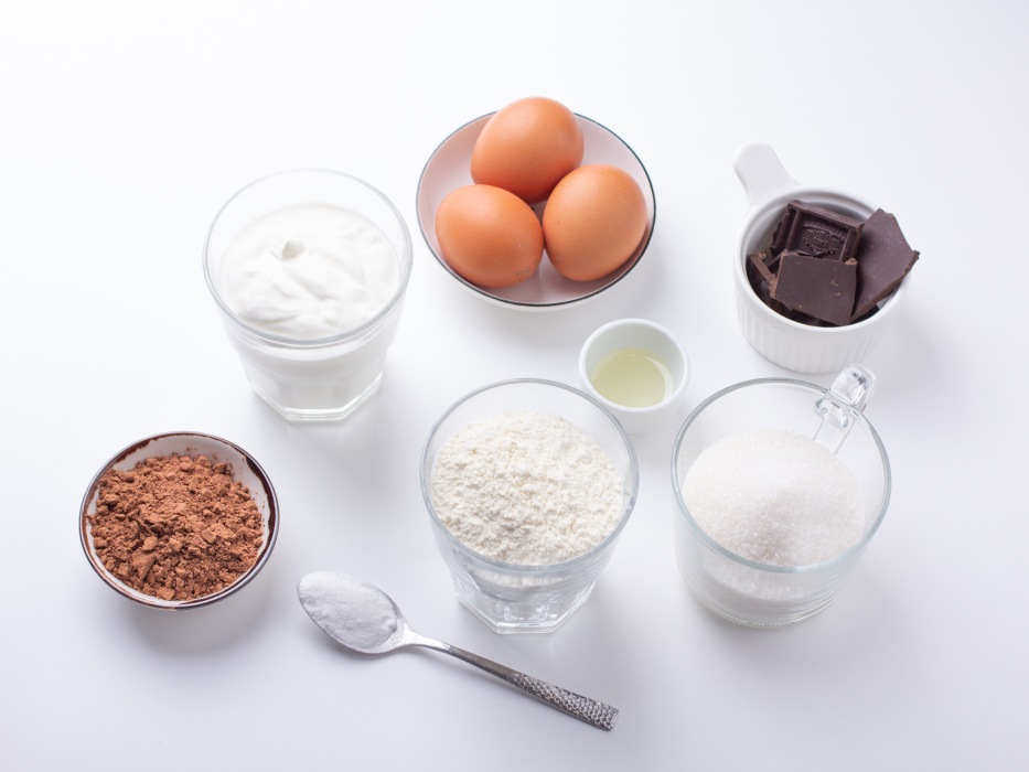 Подготовить все ингредиенты для вкусного шоколадного пирога с какао.