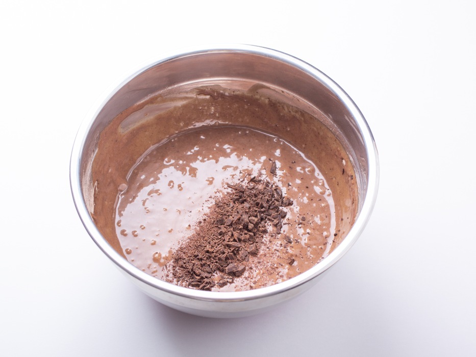 Добавить шоколад в тесто и все перемешать.