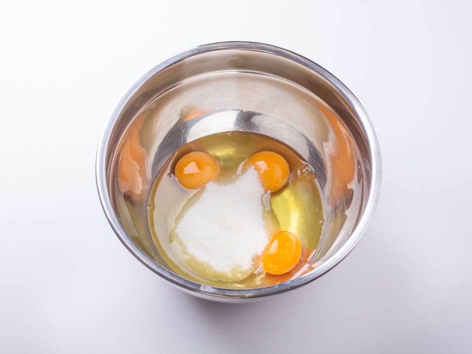 Взбить яйца с сахаром с помощью венчика или миксера.