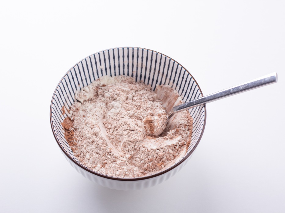 Какао смешать с мукой.