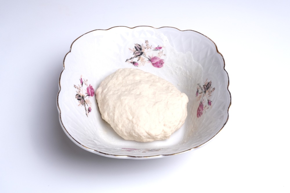 Тесто разделить на равные части. Поверхность для раскатки слегка присыпать мукой.