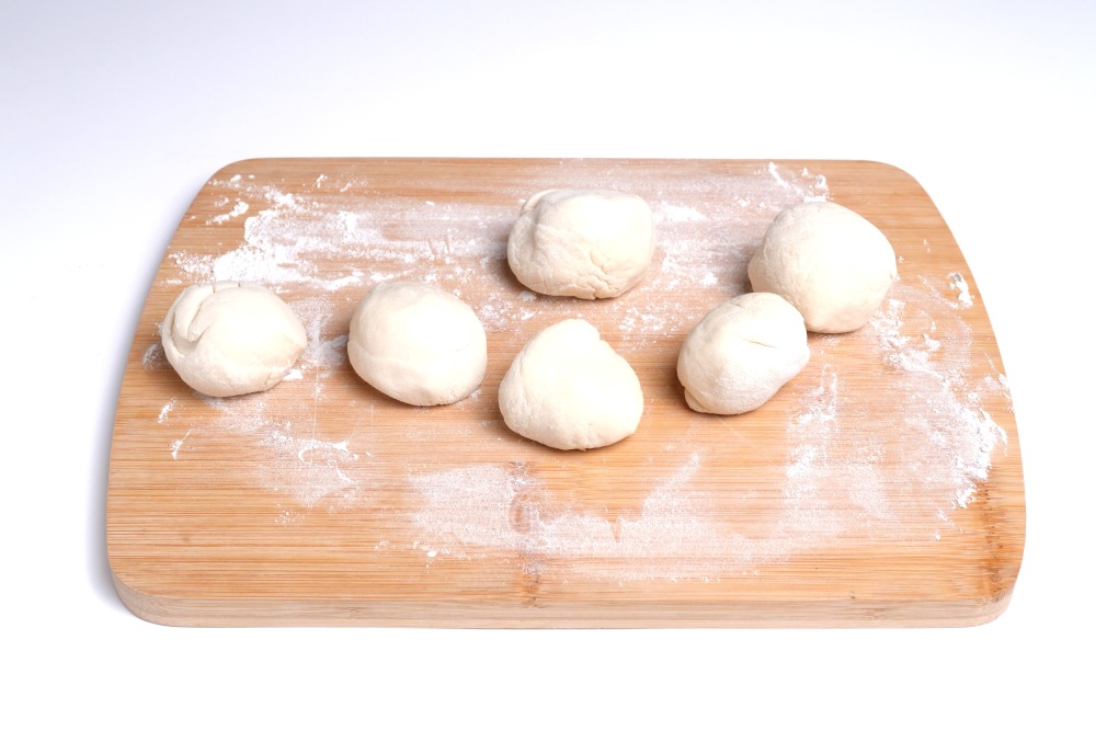 Тесто разделить на равные части, у меня получилось 6 штук. Поверхность для раскатки слегка присыпать мукой.
