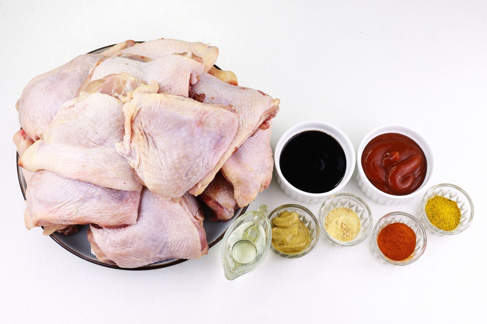 Подготовить необходимые ингредиенты для рецепта куриных бедер для заготовок на неделю.