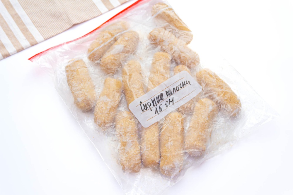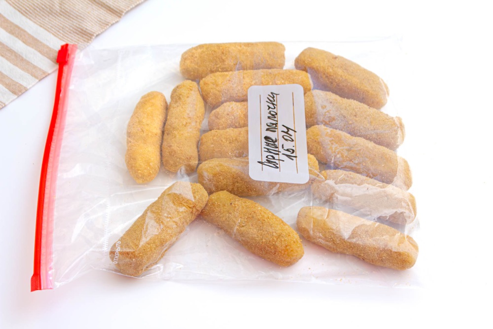 Сложить картофельные палочки с сыром в зип пакет и отправить в морозилку.