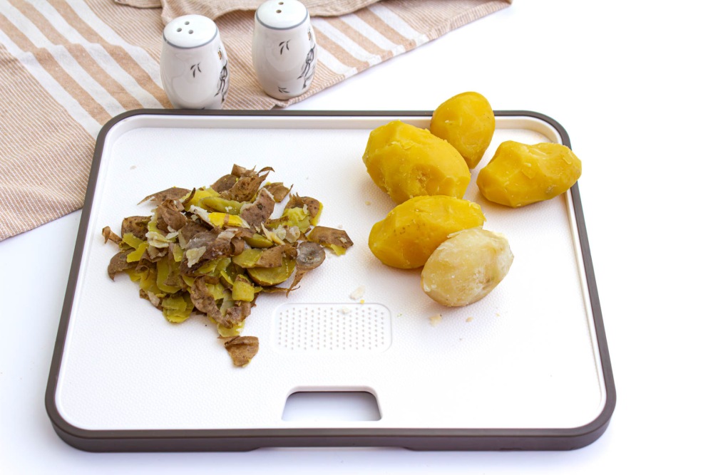 Отварить картофель до мягкости, слить воду, остудить и очистить его от кожуры.