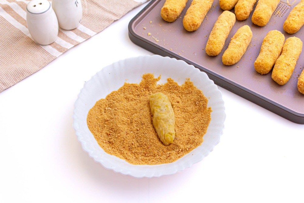 Каждую палочку обвалять в панировочных сухарях.