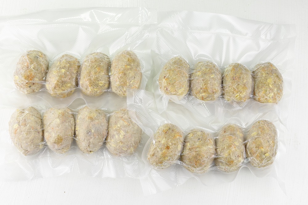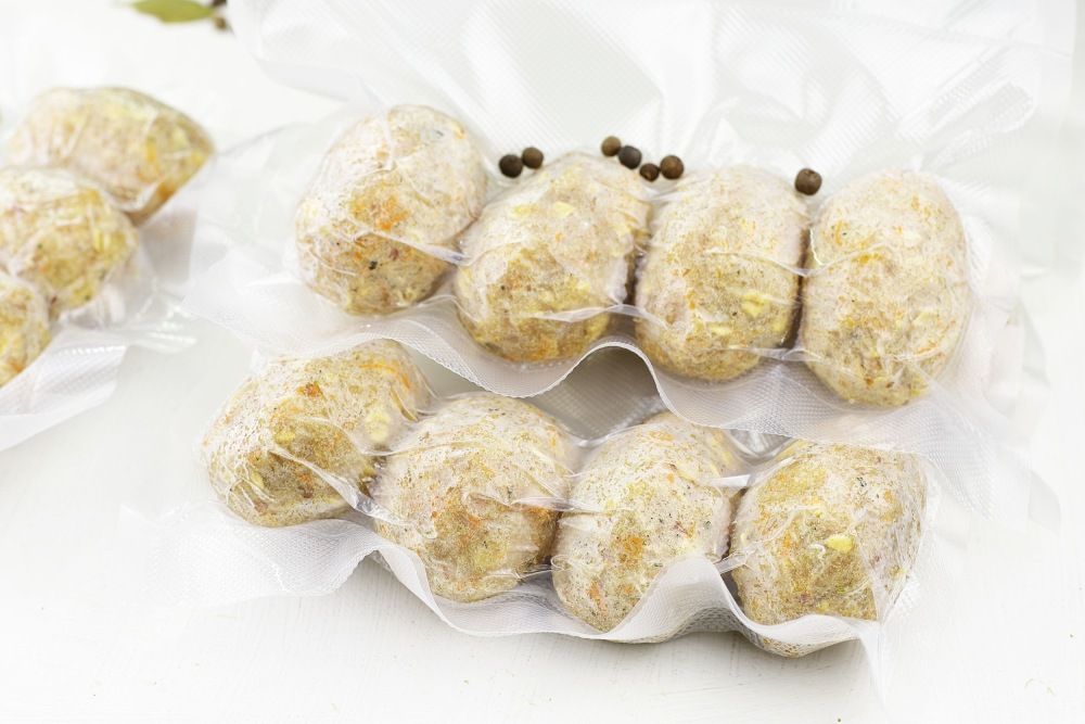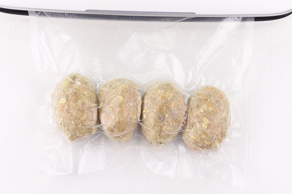 Замороженные котлеты порционно вакуумировать.