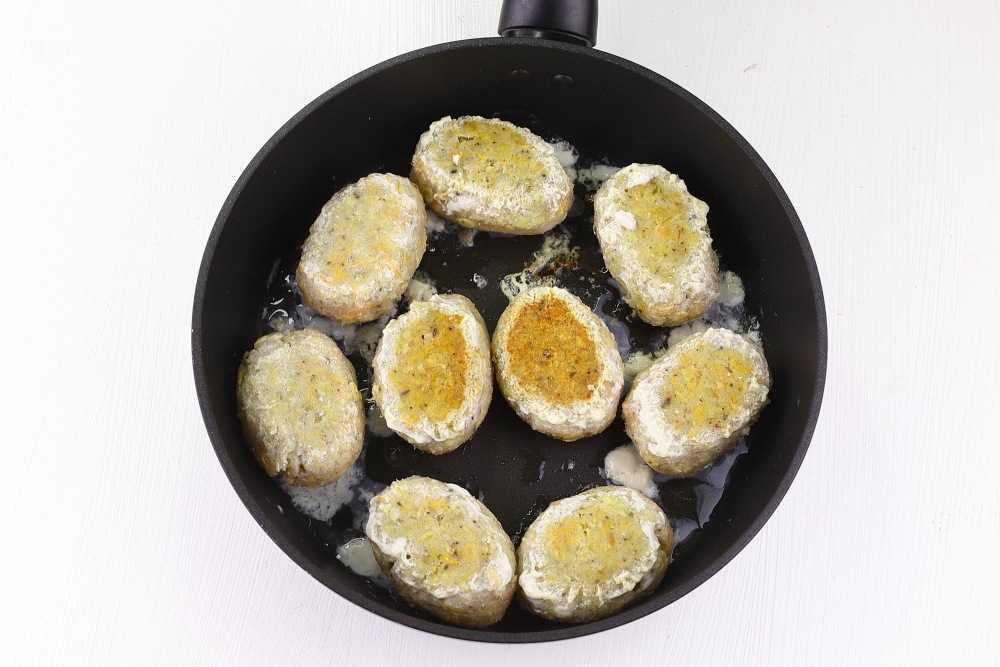 Для классического вкуса обжарить котлеты на сковороде с небольшим количеством масла до золотистой корочки, а затем довести до готовности под крышкой на медленном огне. Если вы придерживаетесь принципов здорового питания, выложите замороженные заготовки в пароварку или запеките в духовке при 180°C, сбрызнув их лимонным соком – благодаря сливочному маслу и свежим овощам внутри, они останутся сочными даже без обжарки.