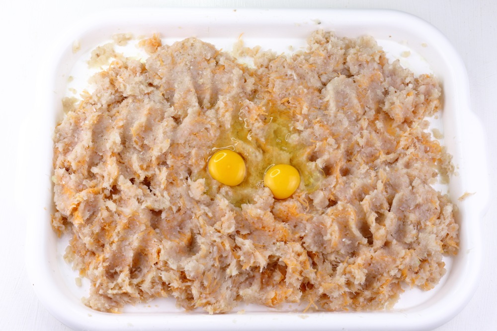 - Чтобы сэкономить время, используйте современную кухонную технику: мощная мясорубка с крупной решеткой мгновенно превратит 2 кг филе и свежие овощи в однородную массу.
