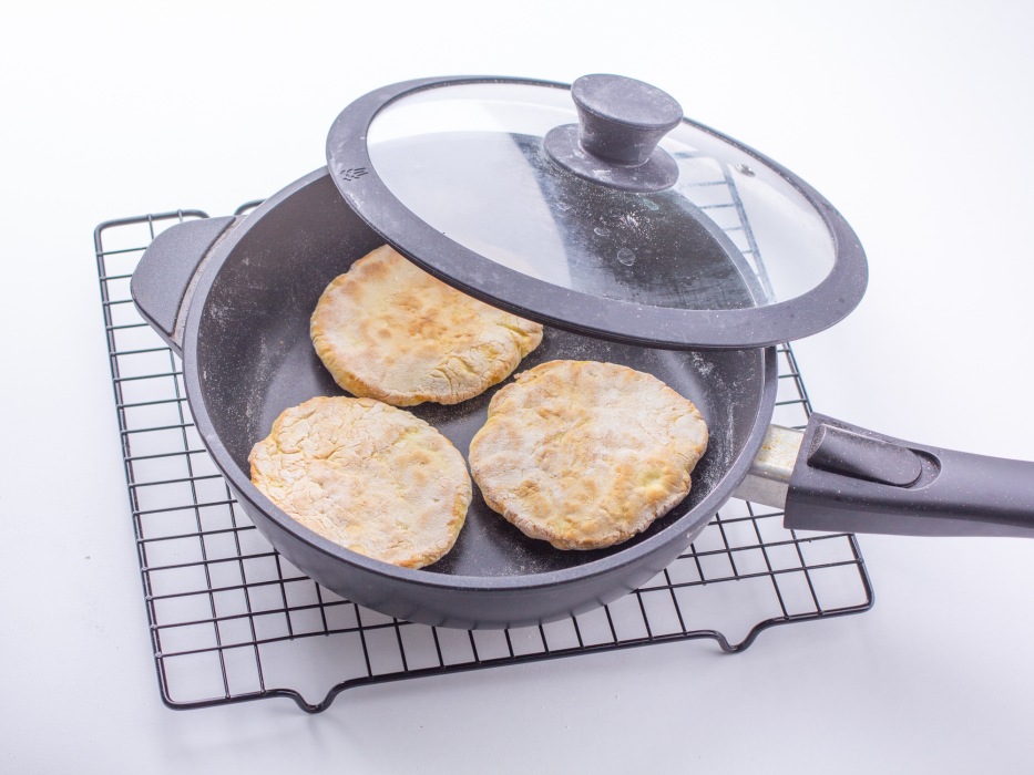 - Не открывайте крышку во время жарки первых 5–7 минут. Пар, который образуется внутри, делает лепешки мягкими. Если жарить без крышки, они получатся сухими.