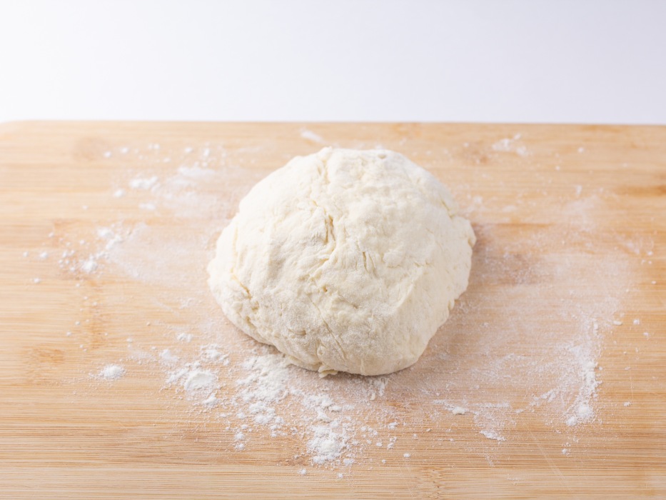 Замесить чуть липкое, мягкое и эластичное тесто, тщательно вымешивая его до получения однородной структуры.