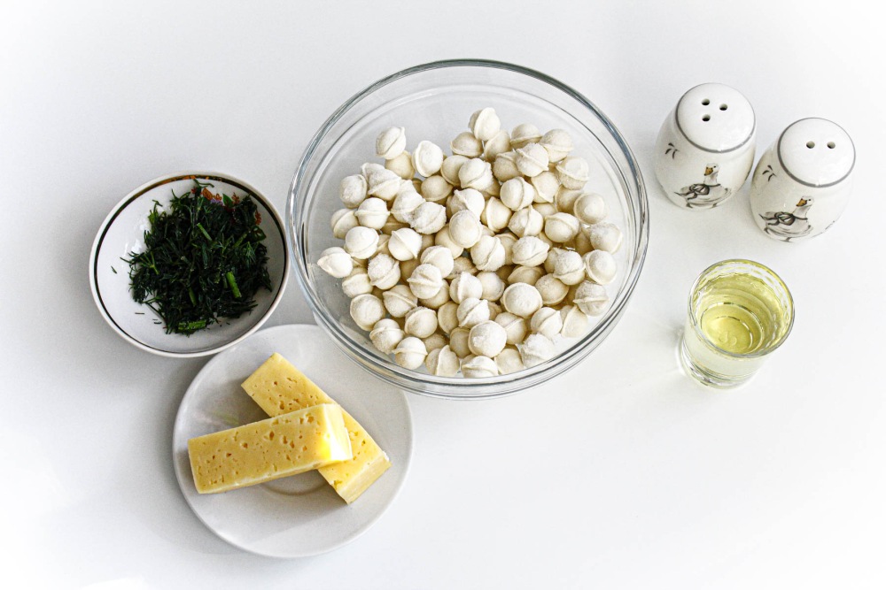 Для этого блюда я выбрала микропельмени с говядиной и российский сыр.