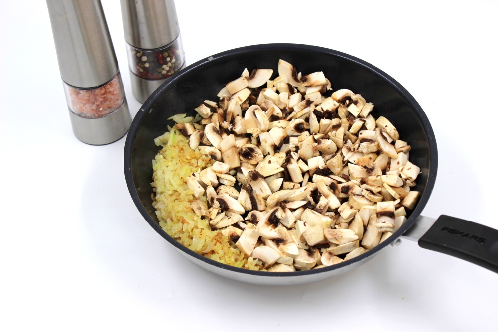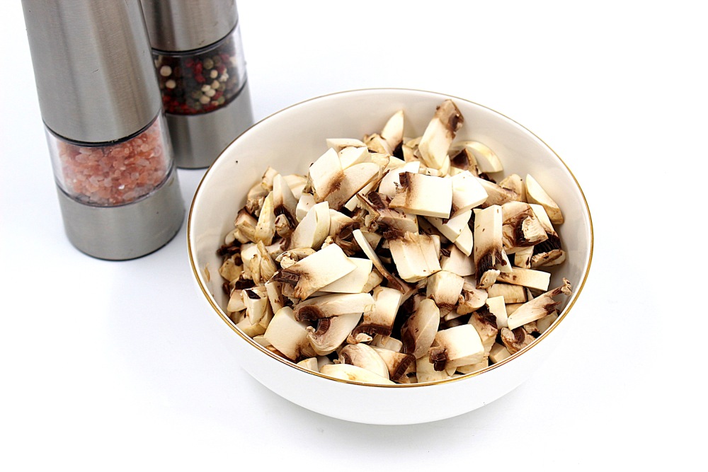 Довольно тонко и не крупно нарезать грибы.