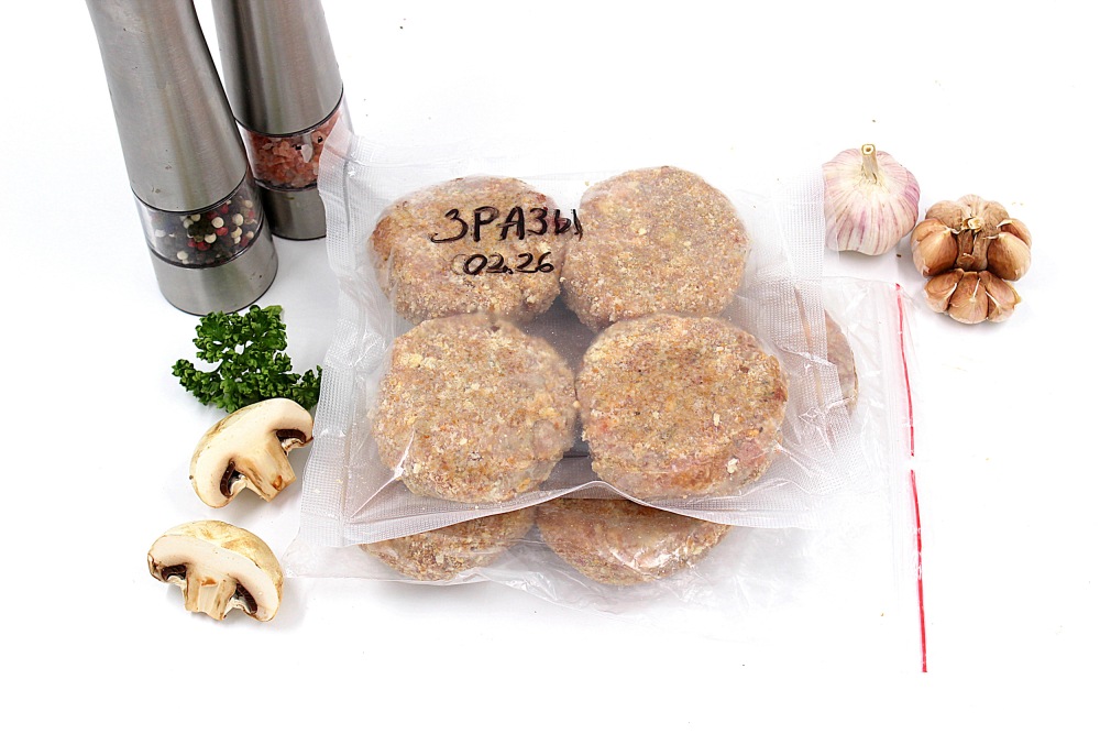 Подмороженные полуфабрикаты вакуумировать и подписать. Поместить в морозилку сроком до полугода.