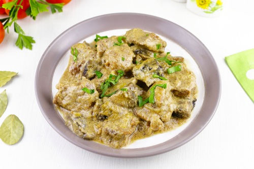 Говядина с грибами в сливочном соусе